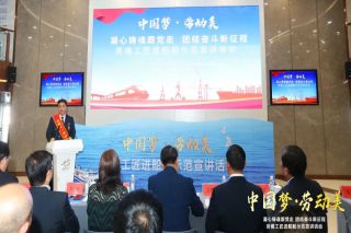 5月13日,,,,,“中国梦·劳动美——凝心铸魂跟党走 团结斗争新征程”劳模工匠进船舶树模宣讲运动在烟台中韩轮渡“新香雪兰”轮举…