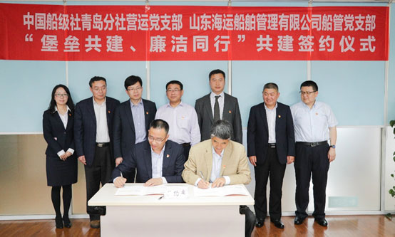 5月16日下昼,,,,公司船管党支部与中国船级社青岛分社营运党支部签署了“堡垒共建、清廉偕行”双共建协议。。。